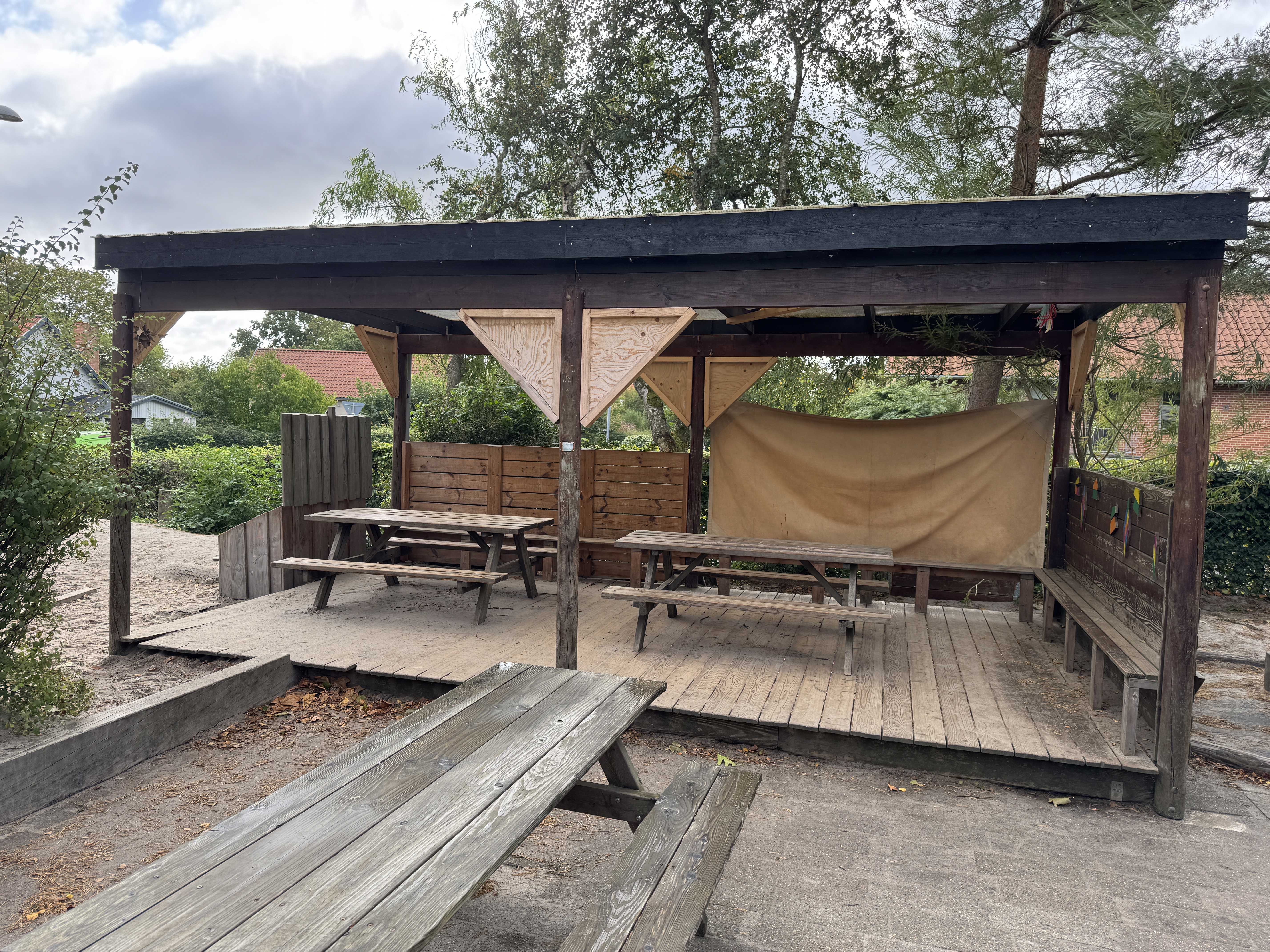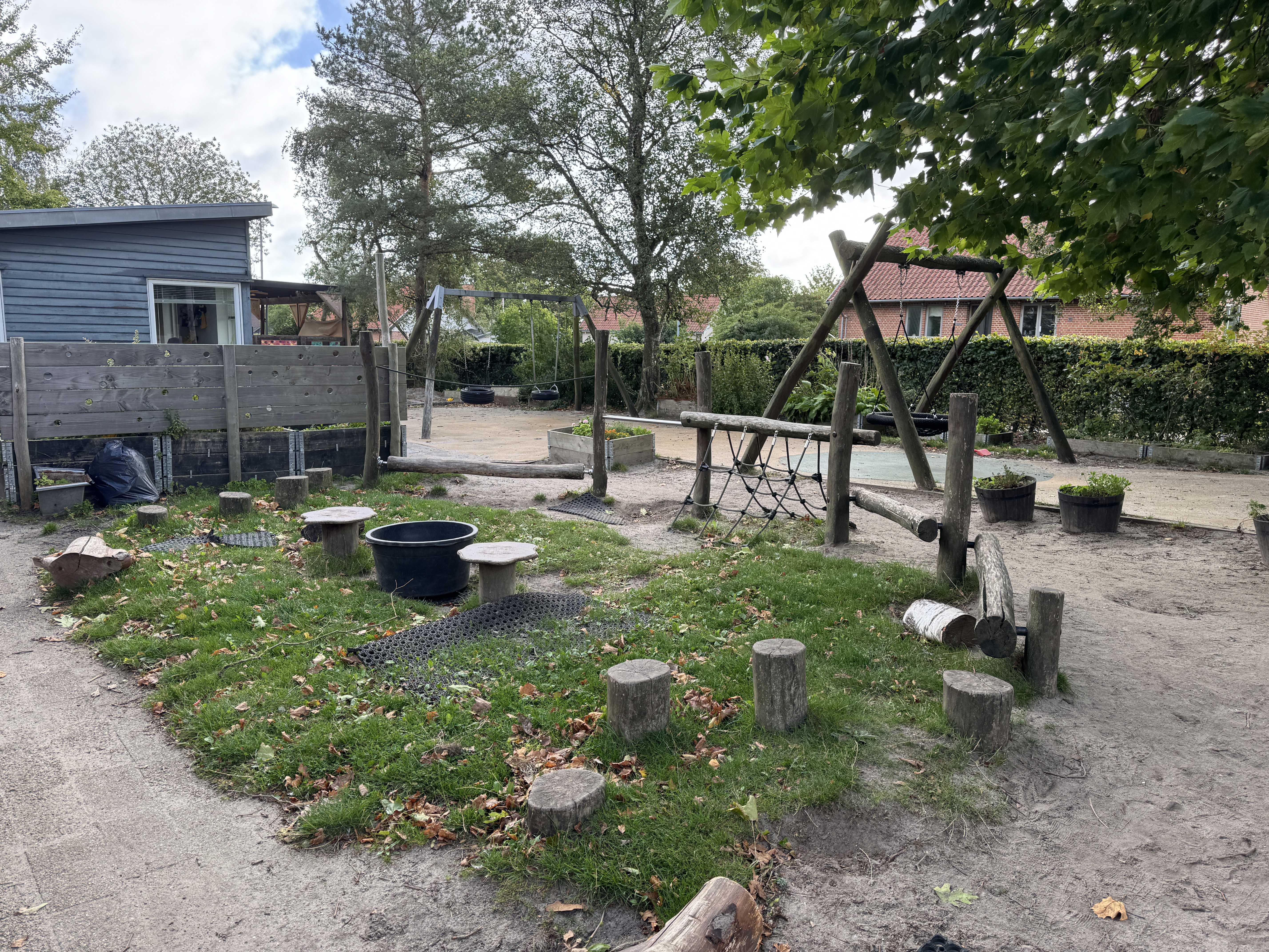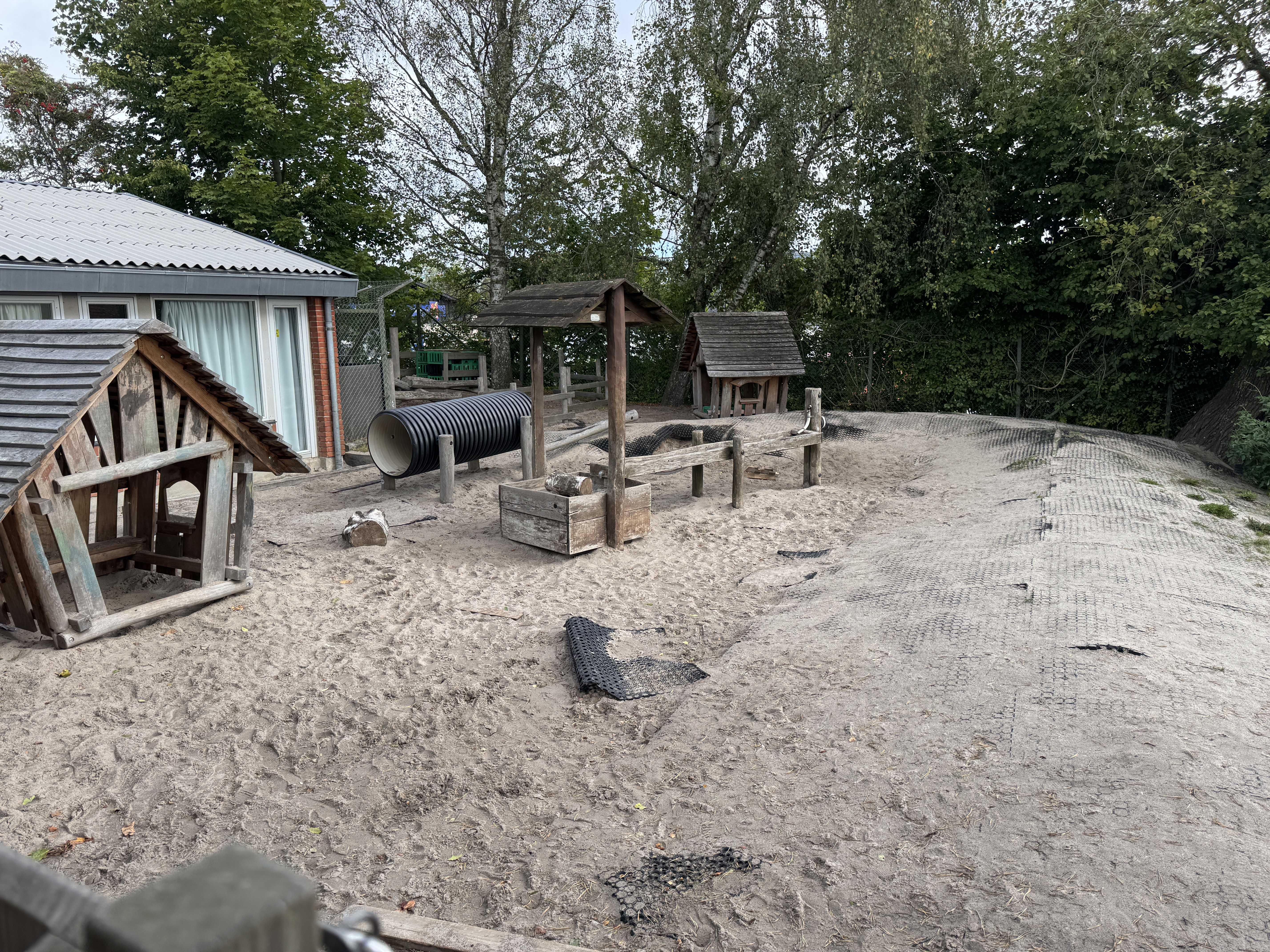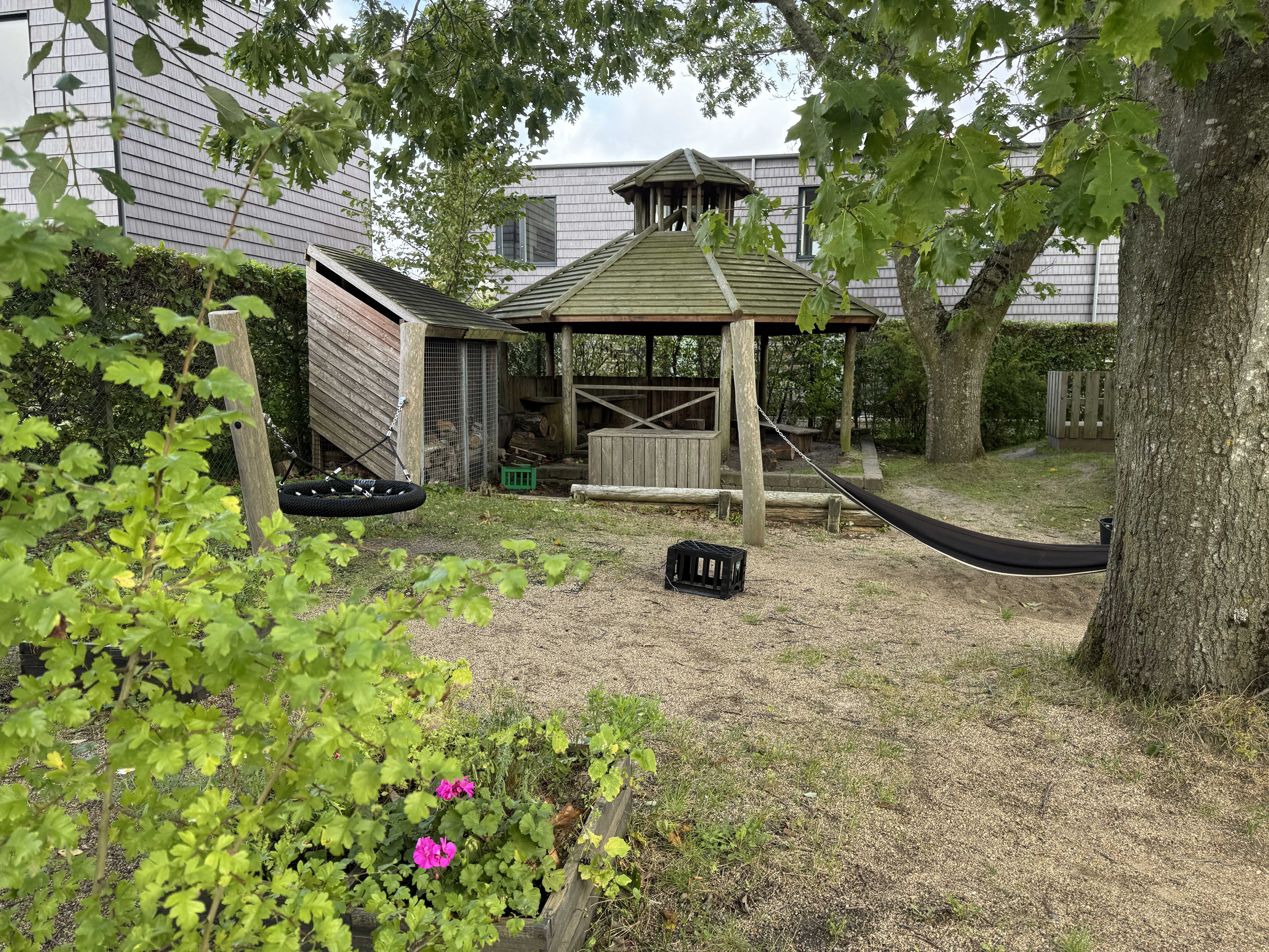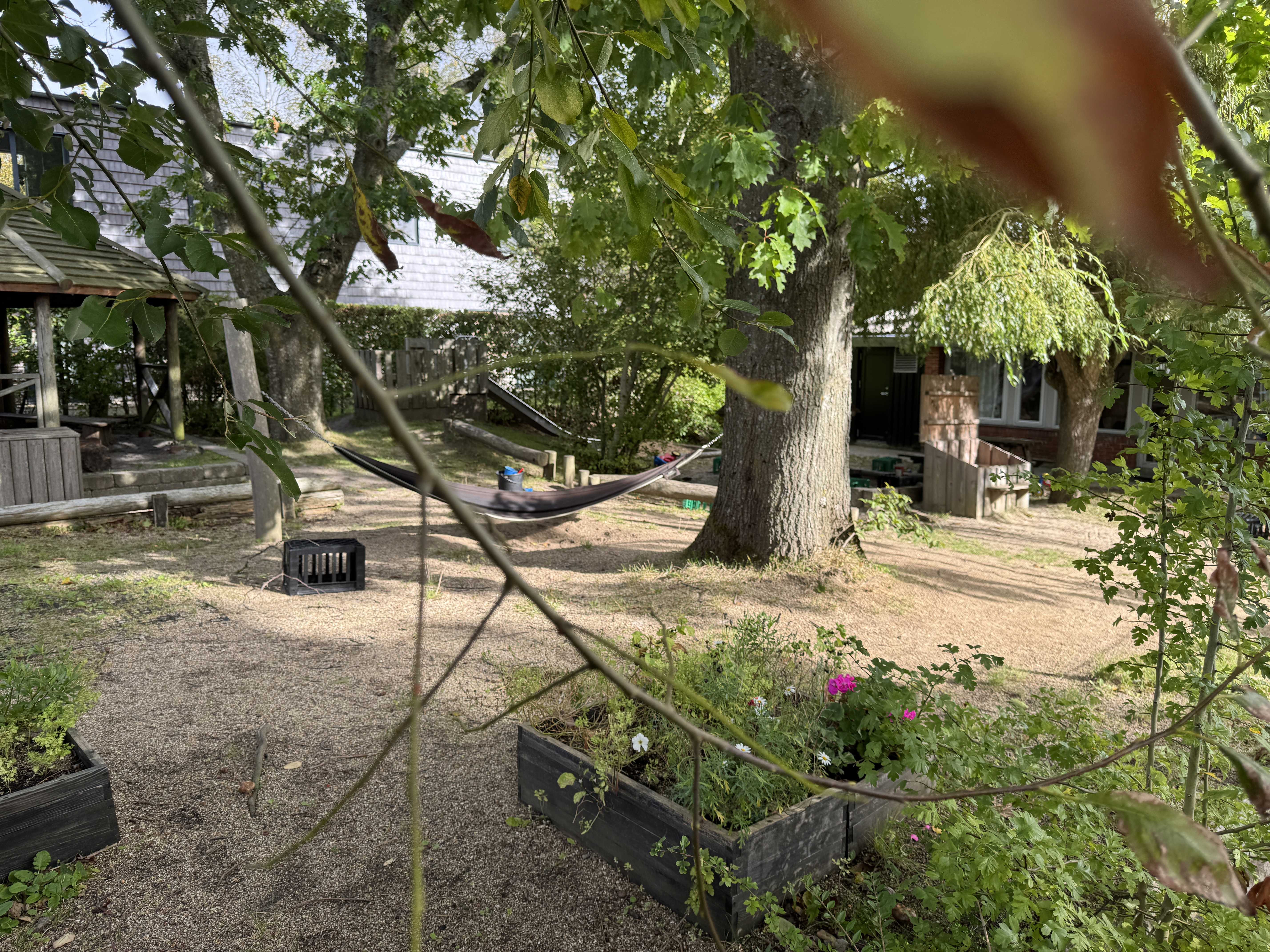 Efter frokost er de største børn på legepladsen, mens de yngste børn sover, og personalet holder frokostpause på skift.