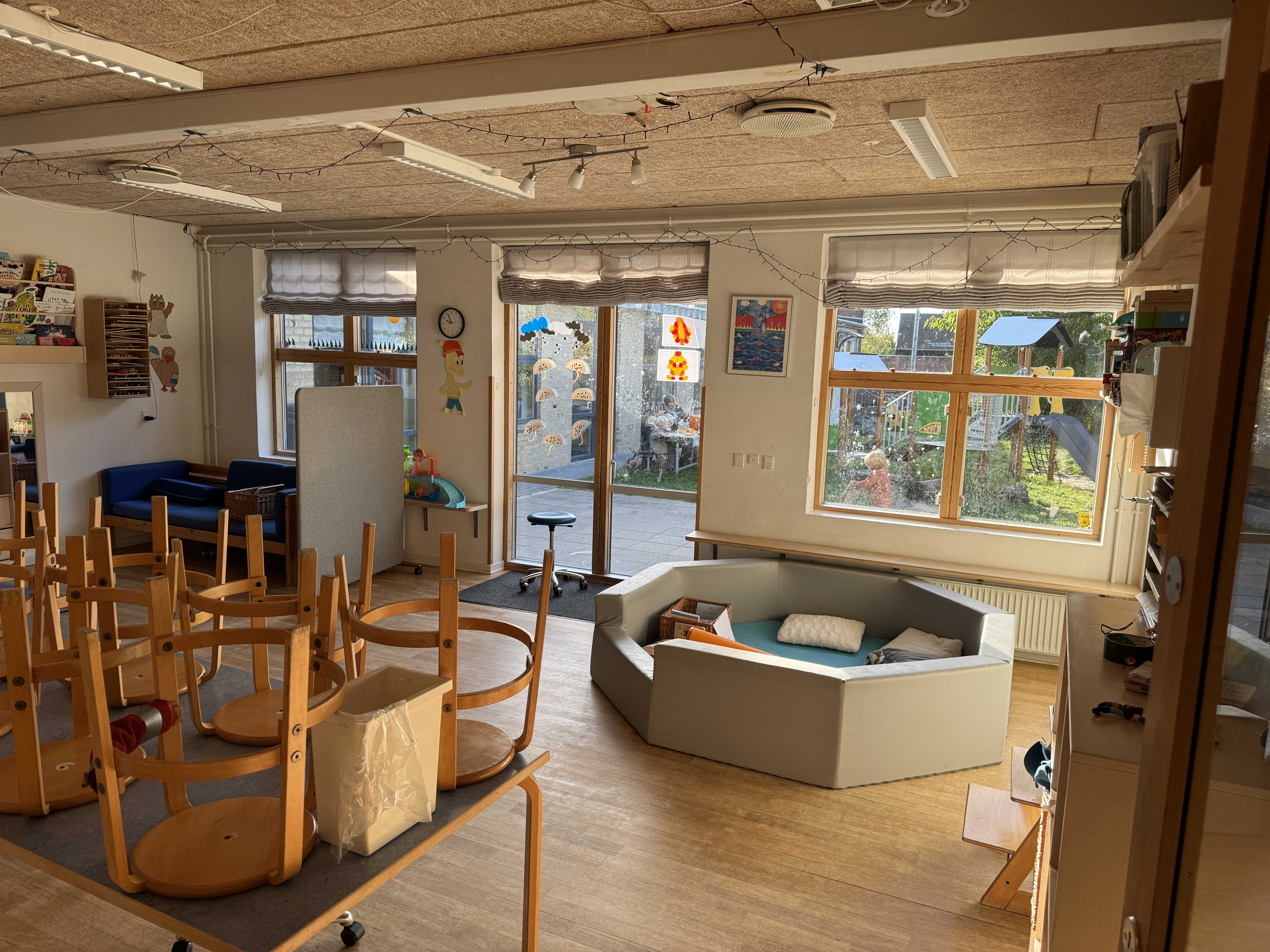 Vuggestuen er indrettet i en gammel fabriksbygning, som er renoveret til os i 1997.